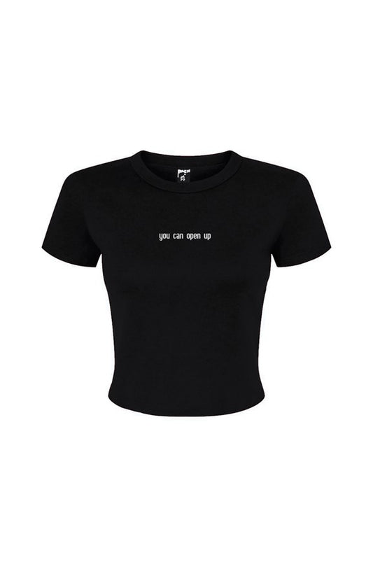 'you can open up' embroidered baby tee